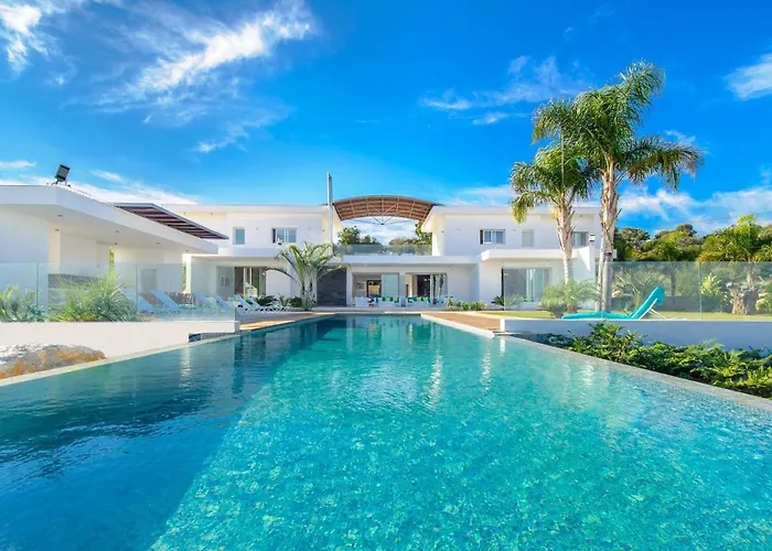 Bay View Villa med 6 sovrum, som ligger 6 km från Agioi Anargiroi Church, erbjuder gästerna vattenpark, soldäck och solterrass. Villan med 6 badrum erbjuder möjligheter till dykning, kanotpaddling och vandring i området, 6 km från Grekiska uddens nationella skogspark.